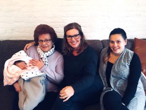 Lexie is geboren op 30 december 2017. Zij is de 4e generatie - en dat is natuurlijk heel speciaal! Op de foto te zien: overgrootmoeder Coby met de kleine Lexie op schoot; oma Christa (Hilgers); dochter (moeder van Lexie) Kelly (Hilgers).