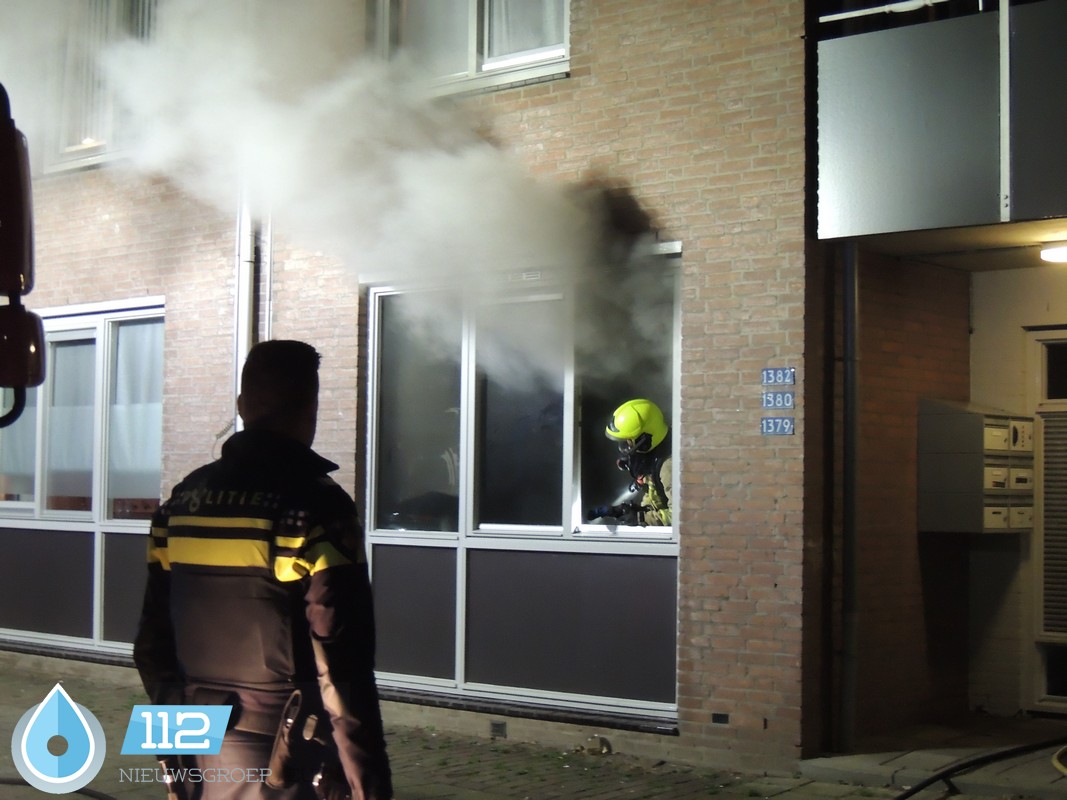 De brandweer is zaterdag om 17.33 uur gealarmeerd voor een gebouwbrand aan de 13e straat van de Hoogmeer. De brand was ontstaan in de keuken van een benedenwoning. De brandweer was snel ter plaatse en had het vuur snel onder controle. Bij de brand is niemand gewond geraakt. Het zwaar beschadigde pand is geventileerd.