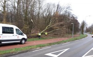 Ook de politie en het wijkbeheer Wijchen zijn bezig met de storm. Wijkagent Henry van Galen twittert: "Storm raast over