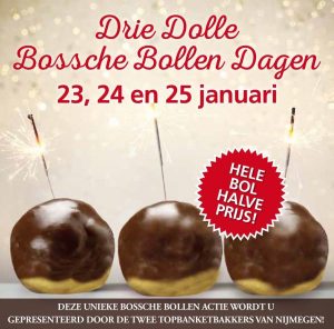 Strik Patisserie aan de Markt 1a in Wijchen heeft weer een heerlijke actie! Op 23, 24 en 25 januari: een hele Bossche Bol voor de halve prijs! Voor de Drie Dolle Bossche Bollen Dagen moet u dus bij Strik zijn!