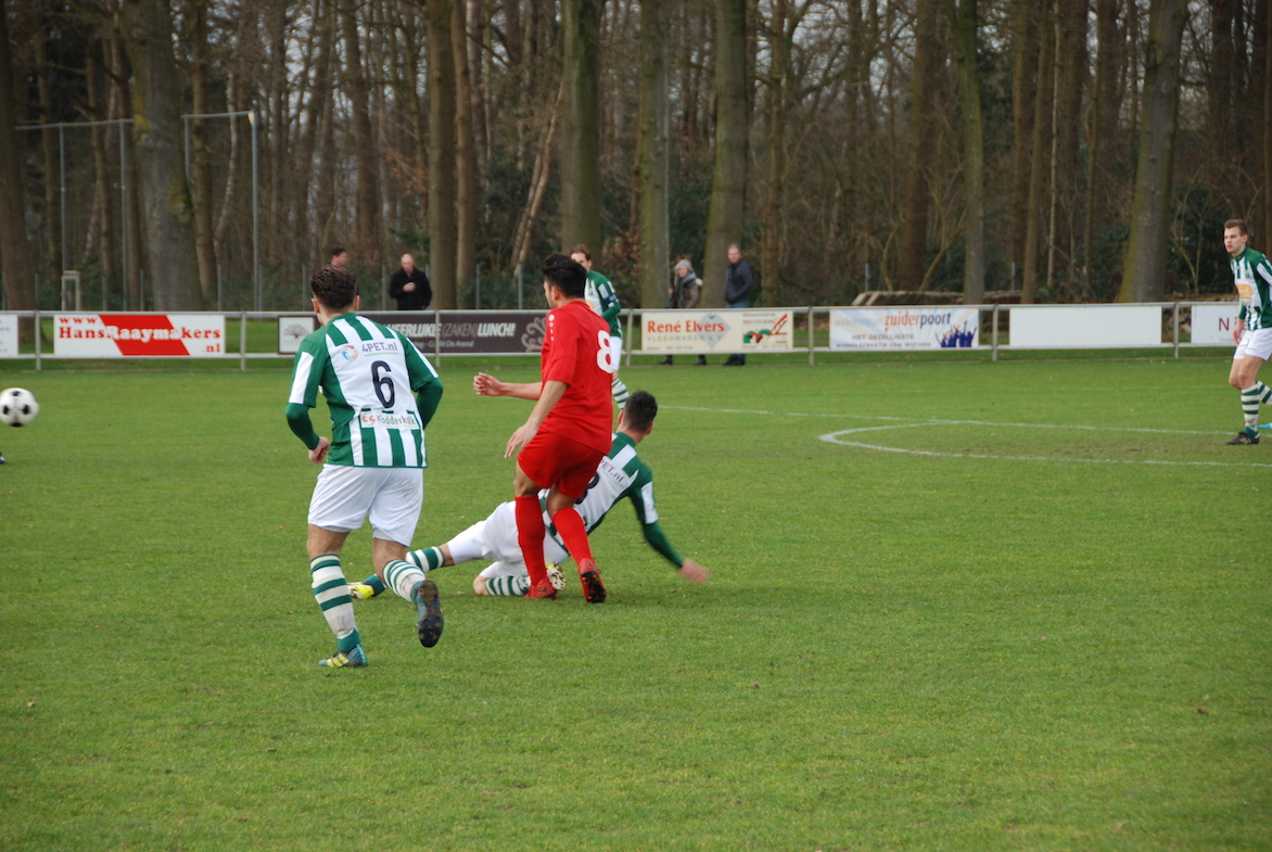 Beide ploegen hadden moeite het spel te maken en de wedstrijd was dan ook erg slordig. Alleen de bezoekers wisten enkele kansjes te creëren, zoals een vrije trap van Tim van Broekhoven. Daarna kregen beide teams de bal niet goed voor het doel en kansen waren schaars. Twee minuten voor rust openden de Tilburgers de score. Na een vrije trap kwam de bal voor de voeten van Milo Brown, die deze achter doelman Mark ter Haar werkte.