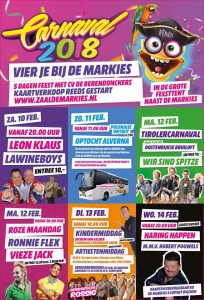 Ook dit jaar hebben carnavalsvereniging de Berendonckers en het team van Zaal De Markies een prachtig programma in elkaar gezet om er samen een beregezellige carnaval van te maken! De feesttent op het parkeerterrein naast De Markies zal natuurlijk weer verwarmd en geweldig mooi ingericht zijn.