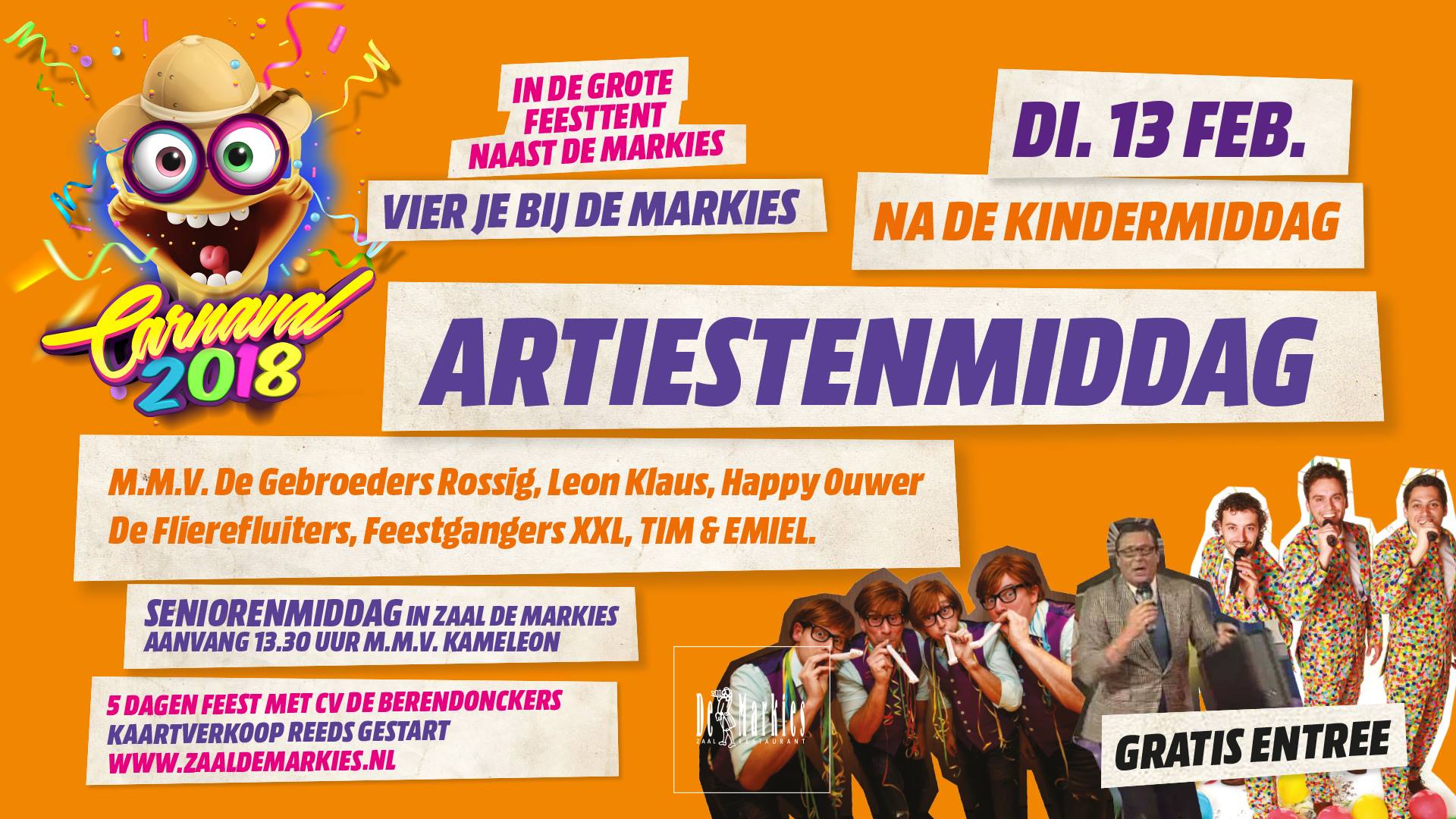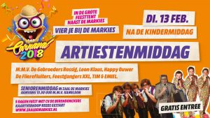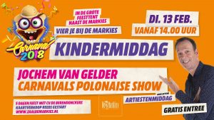 Dinsdag 13 februari 2018: Seniorenmiddag, Kindermiddag met Jochem van Gelder & Artiestenmiddag met vele regionale artiesten (o.a. de Gebroeders Rossig)