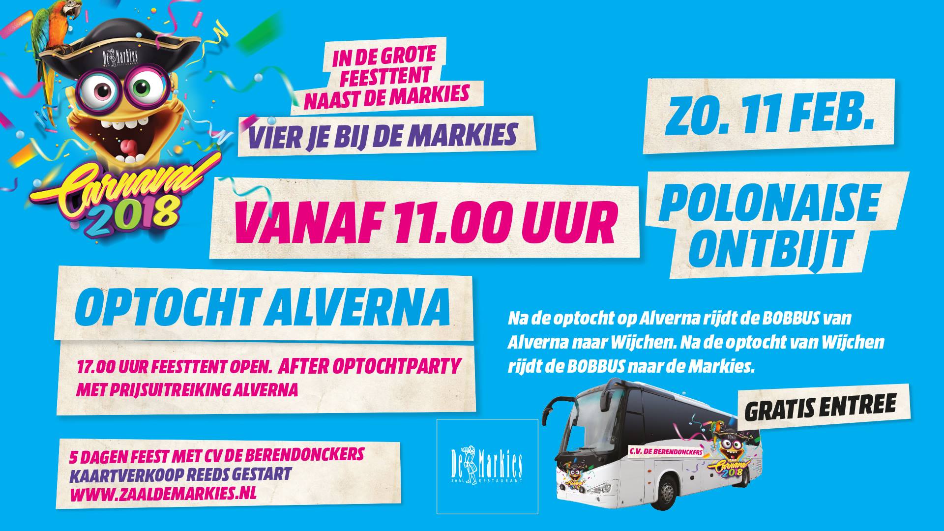 Zondag 11 februari 2018: Polonaise ontbijt, Optocht Alverna, BOBBUS & After-Optocht Party