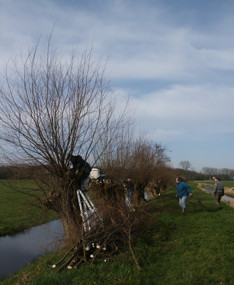 Van november tot april gaan we er regelmatig op uit om wilgen te knotten en hoogstam fruitbomen te snoeien.