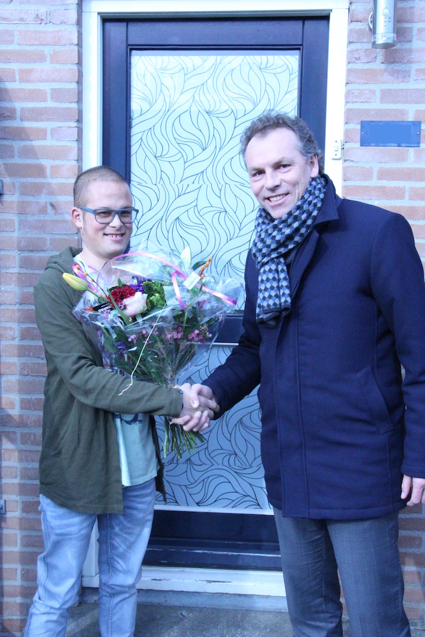 De Startersleningen in de gemeente Wijchen zijn een groot succes. Vandaag feliciteerde wethouder Gerrits de heer Patrick Derks. De gemeente verstrekte onlangs aan hem de 70