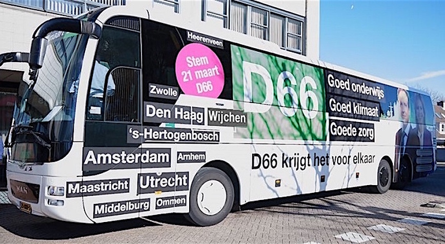 De D66 bus is om 15.45 uur op de Markt in Wijchen.