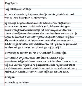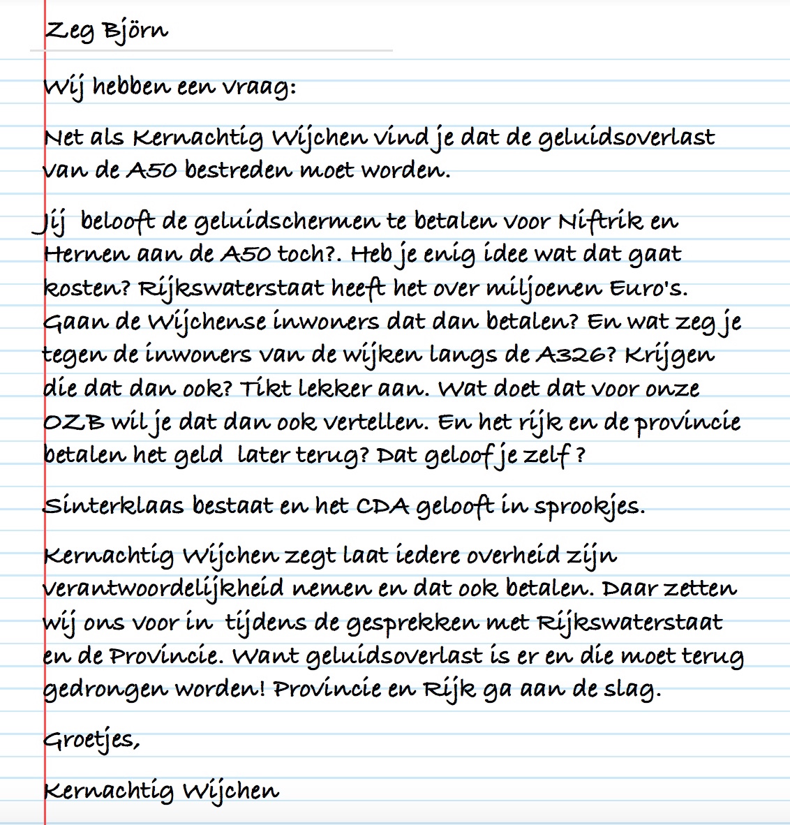 Kernachtig Wijchen benieuwd naar hoe CDA denkt geluidschermen te gaan betalen