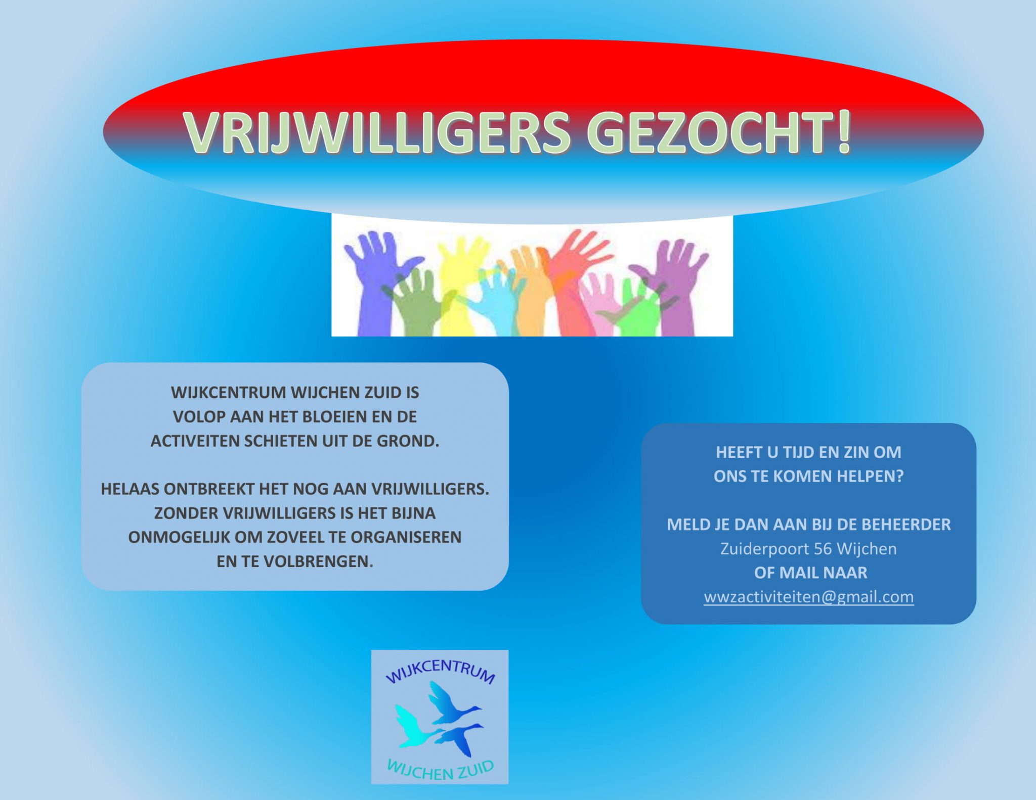 Wijkcentrum Wijchen-Zuid is volop aan het bloeien en activiteiten schieten uit de grond. Helaas ontbreekt het nog aan voldoende vrijwilligers. Informeer bij de beheerder op Zuiderpoort 56 of via