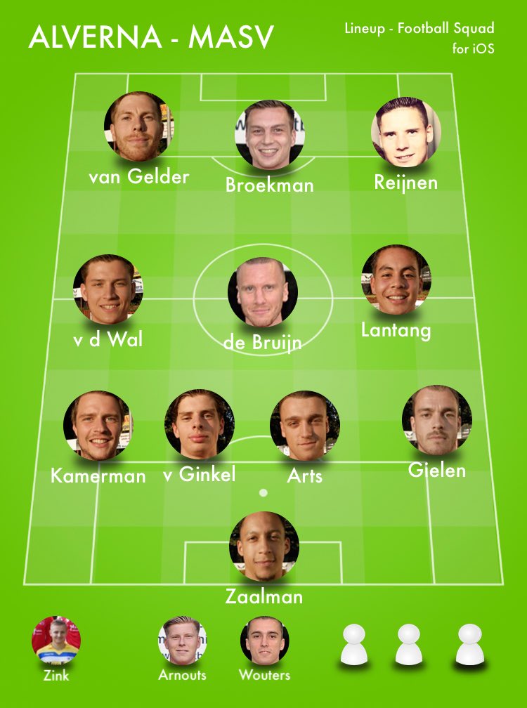 Opstelling: Robert Zaalman: Job Gielen, Dennis Arts, Jari van Ginkel, Tjalling Kamerman (’88 Rob Ockers): Derek de Bruijn ©, Mels Lantang, Cas van de Wal (’75 Jens Arnouts): Sven Reijnen, Bas Broekman (’59 Mike Wouters), Sven van Gelde