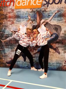 Ook bij de duo's hebben we prachtige resultaten behaald. Bij de adults prechamps danste Maud van den Boogaard en Anne van Eldijk een prachtige wedstrijd en werden 6e van de 24 in hun 2e wedstrijd. Dat belooft wat!