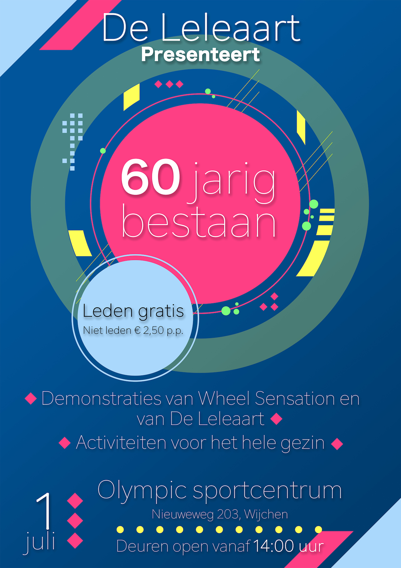 Op zondag 1 juli precies bestaat De Leleaart 60 jaar: "Wij maken er vanaf 14.00 uur een intiem feestje van samen met onze leden en hun aanhang in Sportcentrum Olympic aan de Nieuweweg 203. Er komt een prachtige eigen demo van onze turnsters en acrogymnasten (15.00 uur) en Wheel Sensation laat een lucht-act en een röhnrad-act zien (16.00 uur en 17.00 uur). Entree voor leden gratis, niet-leden: €2,50.