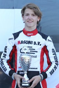 In deze zeer sterk bezette klasse staat hij tweede in de tussenstand op slechts enkele punten van de leider. Tijdens de vijfde ronde van de titelstrijd deed de vijftienjarige rijder uit Wijchen zondag opnieuw goede zaken in het kampioenschap. Op het kartcircuit van Spa-Francorchamps denderde hij naar de eerste en derde plaats in respectievelijk de prefinale en finale.
