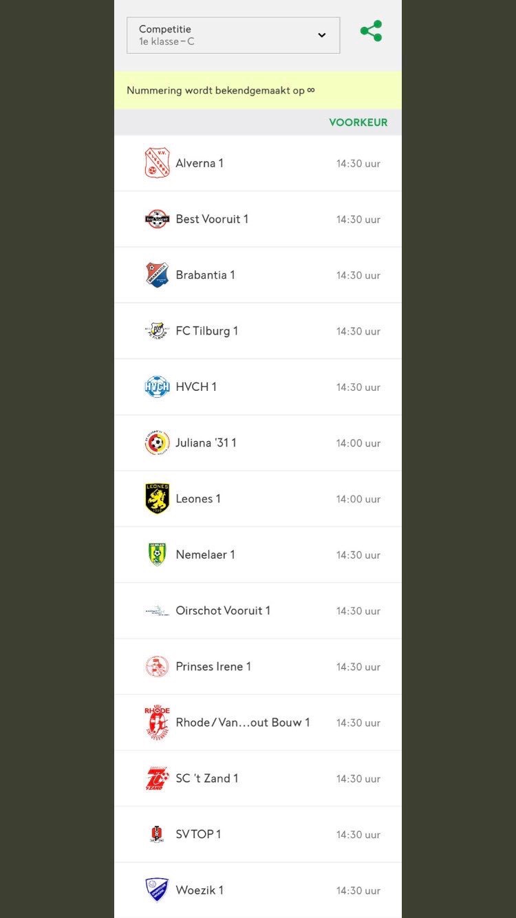 Voor het komend seizoen 18/19 zijn vv Alverna en sc Woezik samen ingedeeld in de KNVB 1e klasse Zuid C. Dat worden dus derby's om naar uit te kijken!