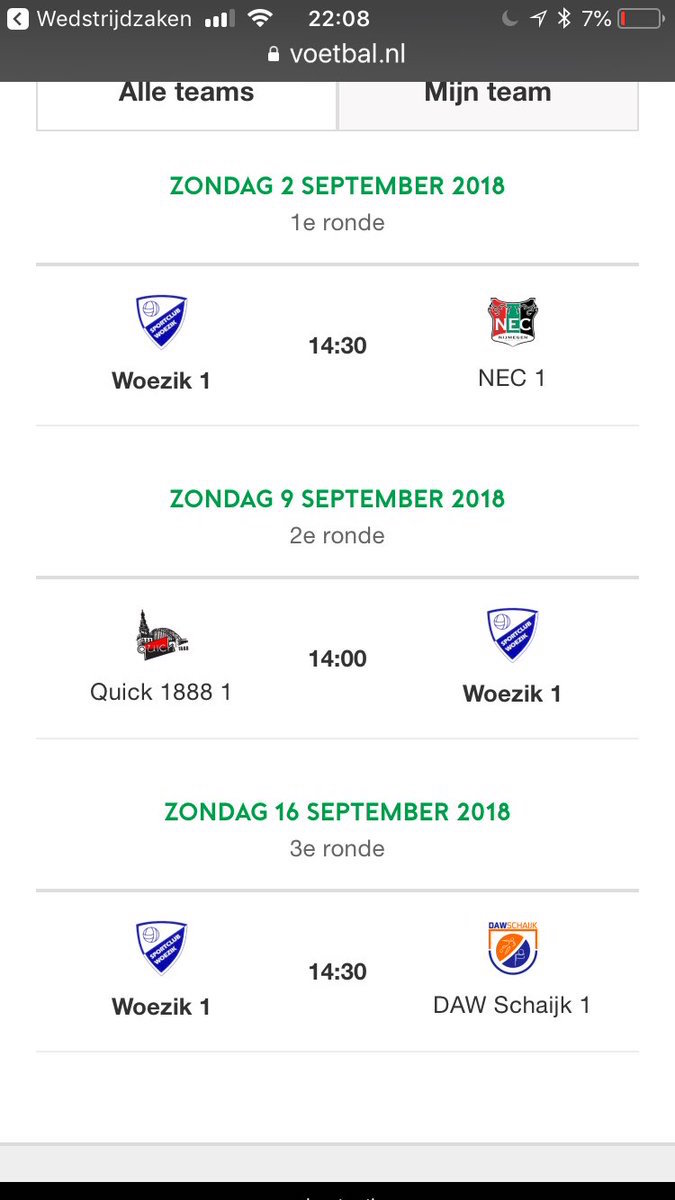 Voetbal: schema bekerwedstrijden van sc Woezik bekend