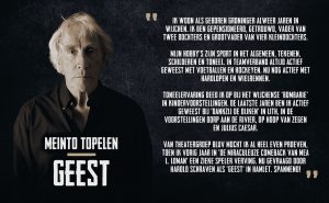 Topelen raakte iets later dan Van Gemert betrokken bij deze voorstelling, toen de regisseur besloot dat ‘de geest’ in het stuk geen projectie zou worden maar gewoon een acteur. ‘Het is heel spannend om iemand te spelen die eigenlijk al dood is’, meent hij. ‘Maar met Harold Schraven als regisseur en de ervaren groep tegenspelers maak ik me daar geen zorgen over.’