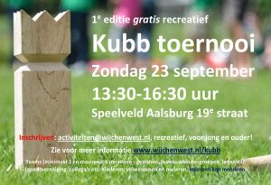 voor de eerste keer een Kubb-toernooi voor jong en ouder plaats op het speelveld Aalsburg 19e straat. Klik op het plaatje voor alle informatie en aanmelden.