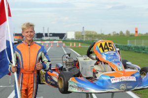 De winnaar van de Benelux Cup dit jaar zag snel dat het ook op zondag met zijn snelheid wel goed zat. “In de kwalificatie reed ik de snelste tijd en daardoor mocht ik van pole position vertrekken. De eerste heat zat het dicht bij elkaar, maar omdat de nummers twee en drie met elkaar gingen vechten om de tweede plaats, kon ik mijn voorsprong vergroten. In de tweede heat maakte ik een foutje, moest ik even door het gras en verloor ik de koppositie. Ik kwam nog wel dichtbij, maar inhalen zat er niet meer in.”