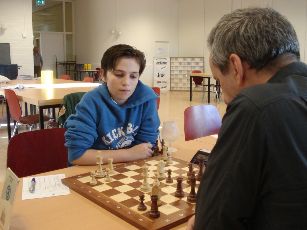 Twan Rutjes speelde een boeiende en spannende partij tegen Rijkschroeff. Rutjes voerde een fraaie combinatie van zetten uit en pakte het initiatief in een scherpe stelling. In de eindfase waren de beste kansen weer voor de tegenstander die actieve stukken had. Winst zat er echter voor beiden niet zomaar in en met een remise toonden de spelers zich tevreden.