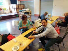 Als hij weer komt, vragen we hem of hij als vrijwilliger op het werkstation kleding aan de slag wil. Hij heeft er zeker talent voor!