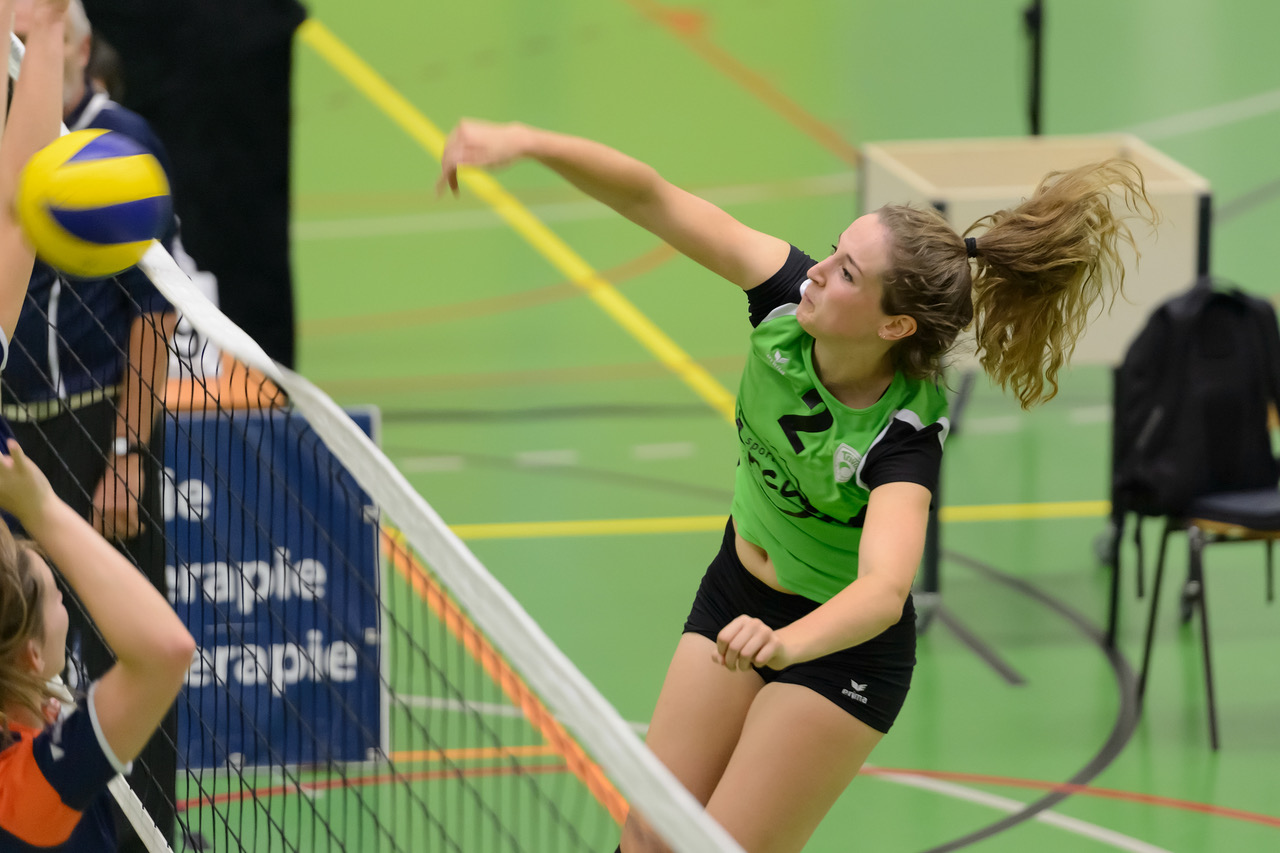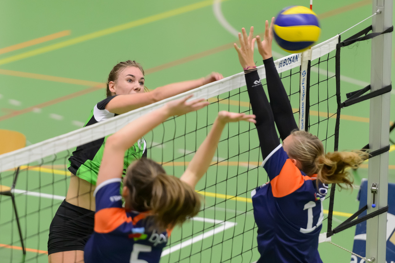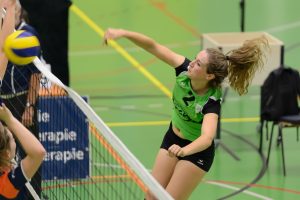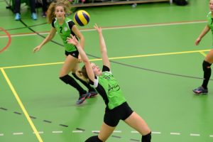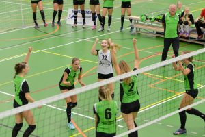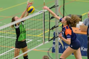 Spelverdeler Vera de Weerdt en libero Evi Bosmeier speelden ijzersterk en stelden haar aanvalsters in de gelegenheid veelvuldig te kunnen scoren.
