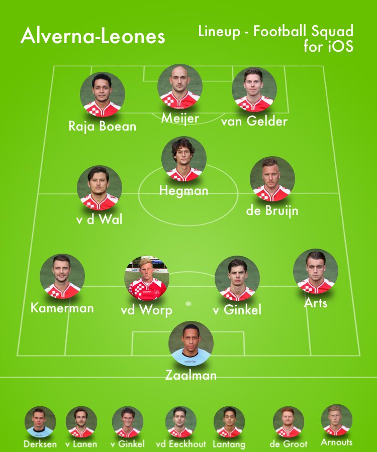 e minuut waren er twee gevaarlijke corners van Leones waarbij Alverna met de schrik vrij kwam. Vlak voor rust had Alverna nog een kans met Mats Hegman die een steekpass van Danny Meijer net voorlangs schoot.