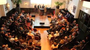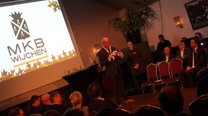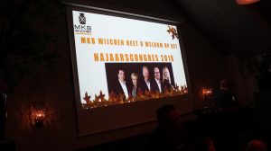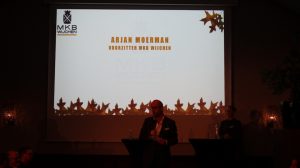 Na de ontvangst opende voorzitter Arjan Moerman namens het bestuur het programma. Allereerst werd even stil gestaan bij het onlangs overleden MKB-lid Theo van Deelen. Voorts werd natuurlijk iedereen van harte welkom geheten, met bijzondere aandacht voor burgemeester Hans Verheijen en wethouder Nick Derks van Economische zaken.