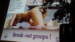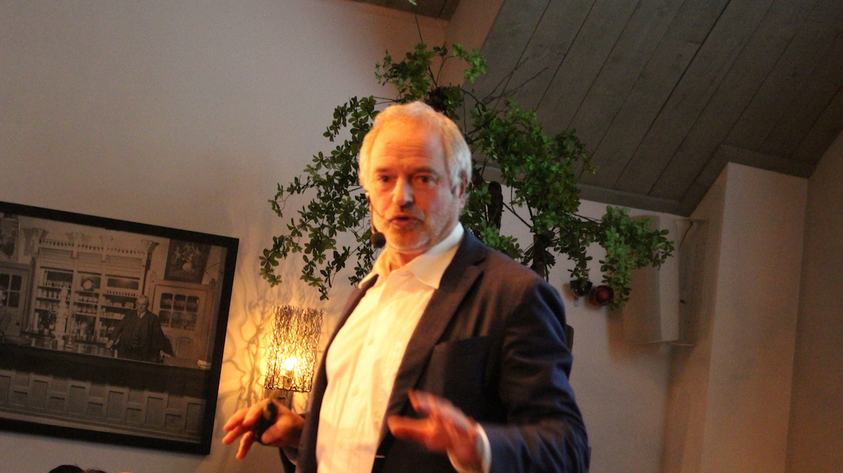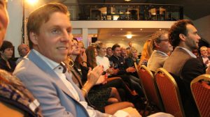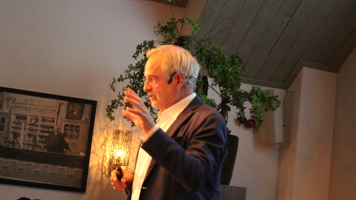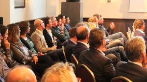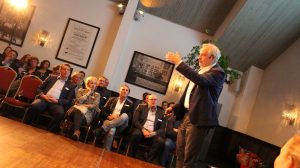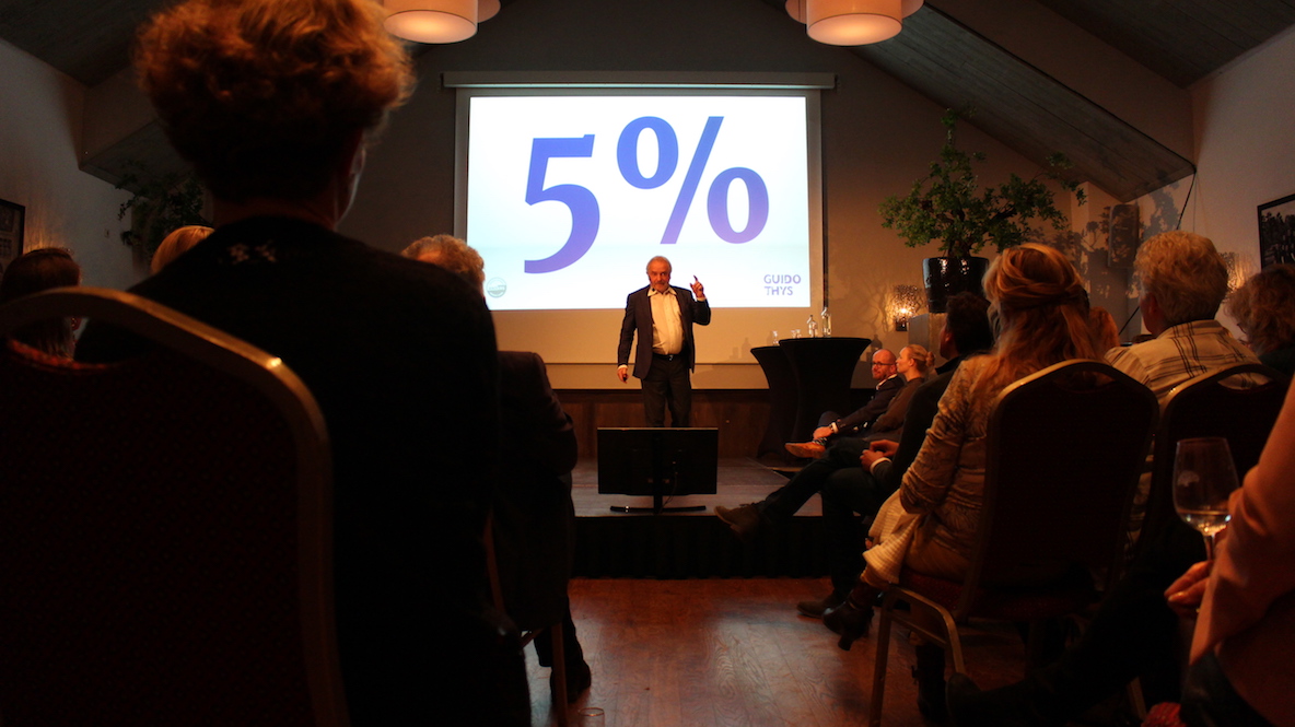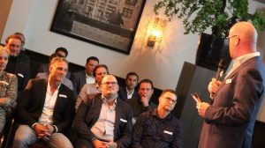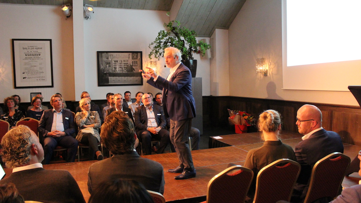 De Vlaamse ‘dwarsdenkende en toch plezante’ gastspreker Guido Thys betrad het podium en nam de ondernemers mee in zijn visie op het ondernemen in de continu veranderende wereld. Hoe bepaal en houd je koers? Guido zette de toehoorders op het verkeerde been, waardoor ze gemakkelijker op een andere manier naar het bedrijf en het ondernemerschap kijken. Kijk niet alleen naar het product als een klant een vraag aan je stelt. Het gaat niet daarom, maar om de vraag er achter en de vraag daar achter. In feite gaat het om de behoefte van de klant. Dus focus je daarop als ondernemer en staar je niet blind op het product dat je levert, want dat zou morgen of overmorgen wel eens achterhaald kunnen zijn. Als je geen meerwaarde biedt als ondernemer dan kiest de klant voor een ander. Dit vraagt om creativiteit en aanpassingsvermogen van de ondernemer, oftewel uit je comfort-zone komen.