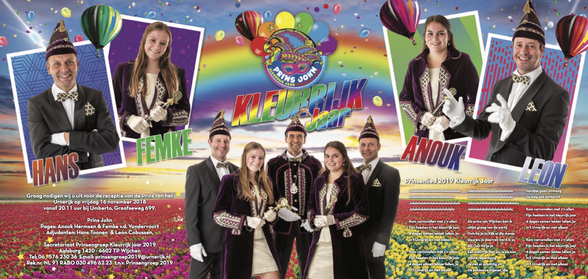 Prins John d'n Derde zal het feest aanvoeren met z'n Pages Anouk Hermsen & Femke v.d. Vondervoort en z'n Adjudanten Hans Toonen & Leon Cobussen. Het 'Kleurrijk Jaar' wordt ingeluid met het volgende lied: