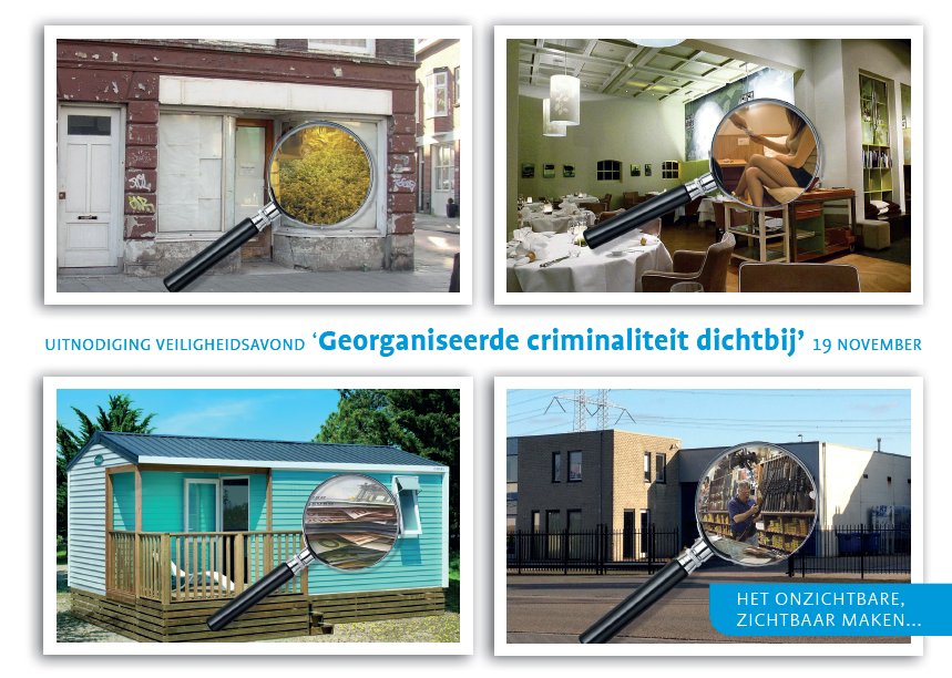 Steeds vaker proberen criminele organisaties naar de bovenwereld te komen. Ze maken dan gebruik van de schijnbare anonimiteit die bedrijventerreinen, winkelgebieden en het buitengebied hen bieden. Georganiseerde criminaliteit ondermijnt het lokale gezag, verslechtert veiligheid en leefbaarheid en levert schade op voor ondernemers. Tijdens deze bijeenkomst maken wij het ‘onzichtbare zichtbaar’ om zo samen georganiseerde criminaliteit tegen te gaan. Wij gaan graag met u hierover in gesprek.
