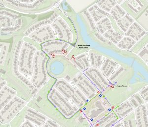 - Bij basisschool De Trinoom maken we een schoolroute om de school heen. Ook komen er meer parkeerplaatsen. Tijdens het brengen en ophalen van de kinderen maken we een soort doorsteek tussen De Lingert en Diemewei. Tot slot wordt de kiss and ride-zone korter. Hierdoor ontstaat weer ruimte voor een nieuwe fietsenstalling. Ook kunnen ouders hier de kinderen ophalen.