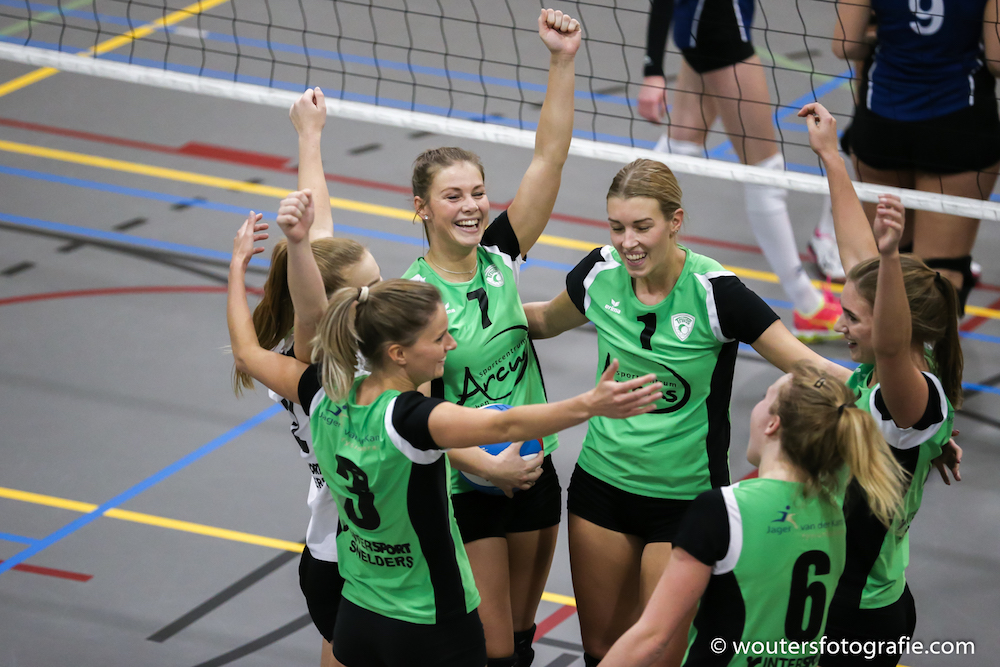 e ‘Vissertje’ en toen had VVH het wel gezien. Na de timeout van VVH knalde Anne Visser er nog eentje in, waarna ze gelijk even aan de thee mocht. Sophie Posthumus was haar vervangster voor de service. Het laatste puntje was een goochelbal van Korinda Kant. Met veel effect liet zij de bal over de lengterichting van het net rollen, waarna deze op de grond van VVH viel. “Het heeft even wat trainingen gekost, maar dan heb je ook wat”, aldus de passer-loper van Trivos.