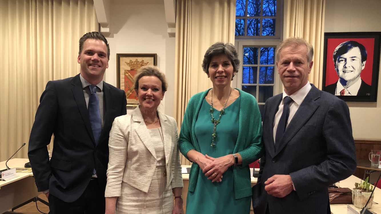 Foto van de CDA-fractie in de Wijchense gemeenteraad (v.l.n.r. Björn Derksen, Marlien Joosse, Karin Hoogteijling en Jan Peters Sengers.
