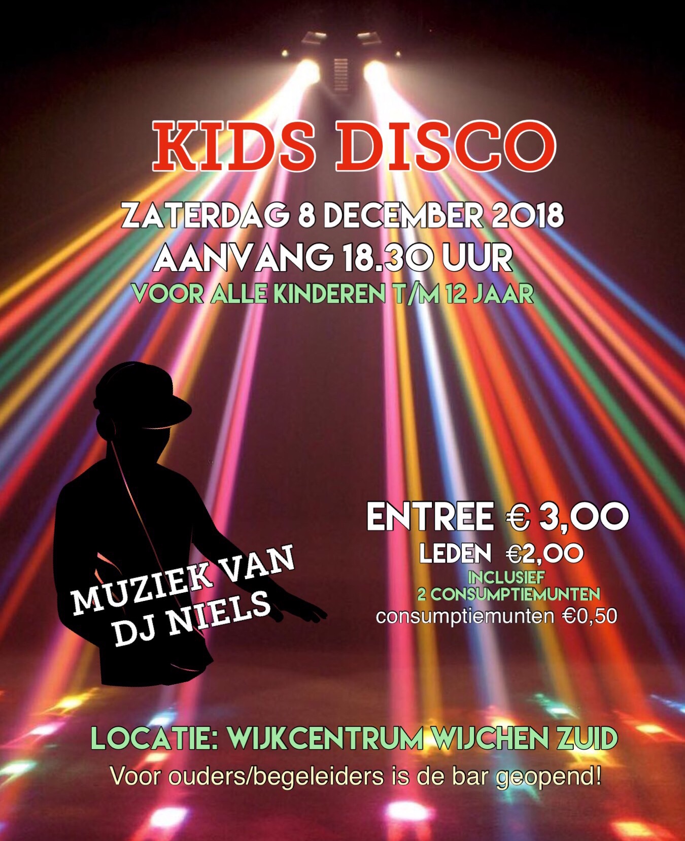 De aanvang is 18.30 uur en de entree bedraagt 3 euro (leden 2 euro) incl. 2 consumptiemunten à 50 cent. Voor ouders/begeleiders is de bar geopend.