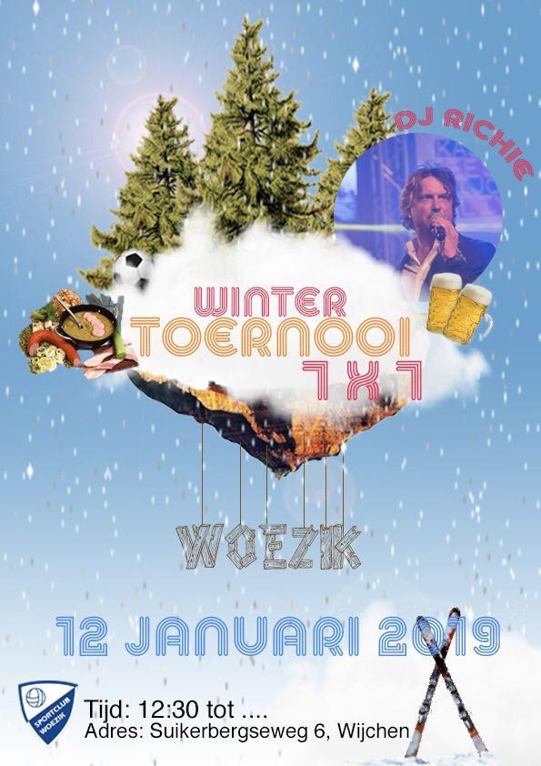 Op zaterdagmiddag 12 januari 2019 vindt de aftrap plaats van het 7x7 Sc Woezik wintertoernooi. De teams zullen in twee categorieën strijden, de categorieën zijn verdeeld in boven de 35 jaar en onder de 36 jaar zonder dispensatie.