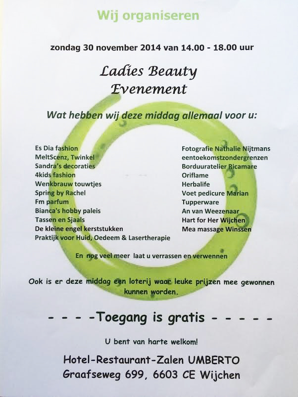 Ladies Beauty Evenement met veel bekende en gezellige standhouders! Laat u verrassen en verwennen. Ook is er deze middag een grote loterij waar leuke prijzen mee gewonnen kunnen worden.