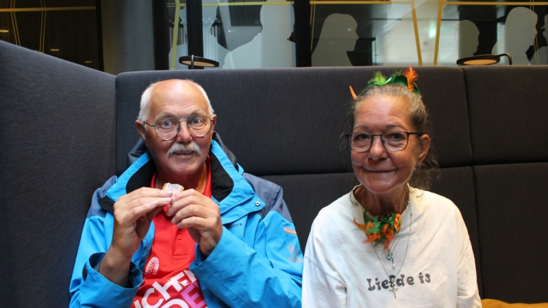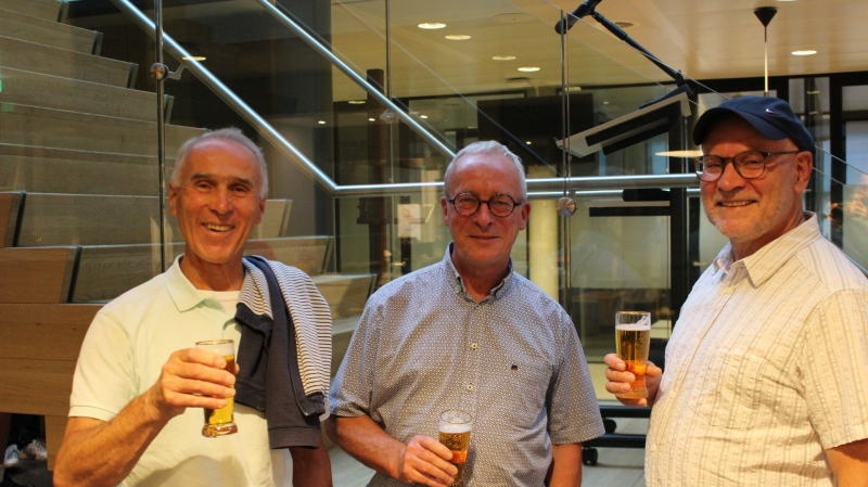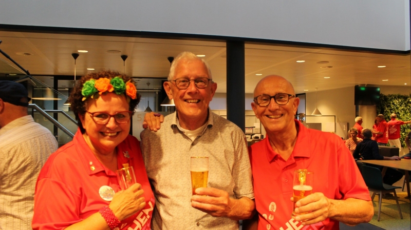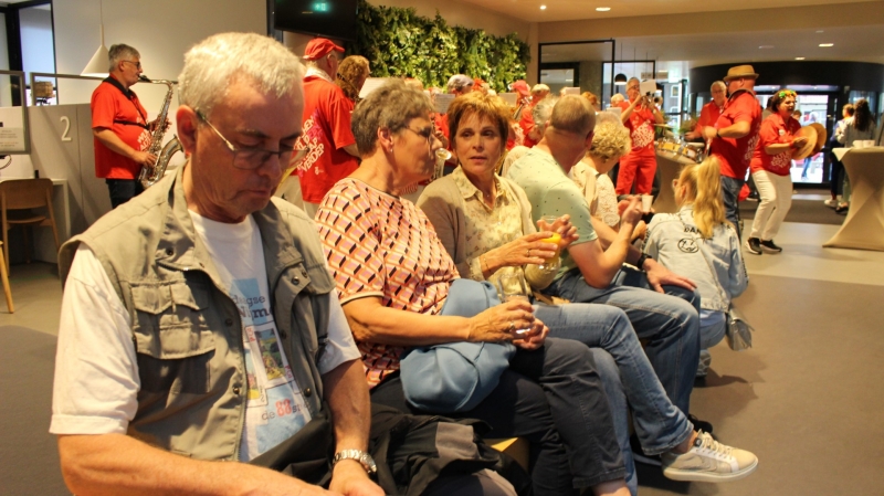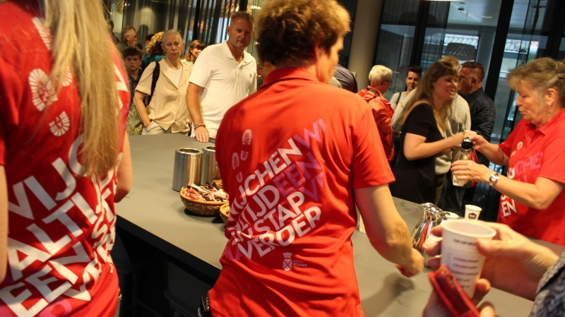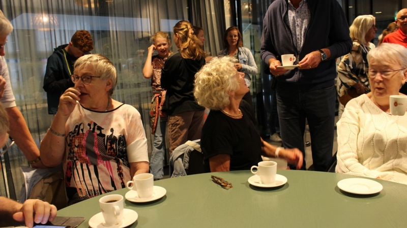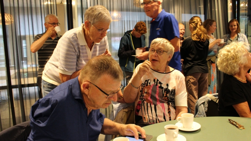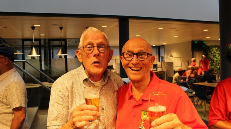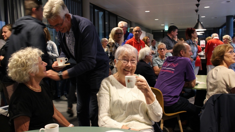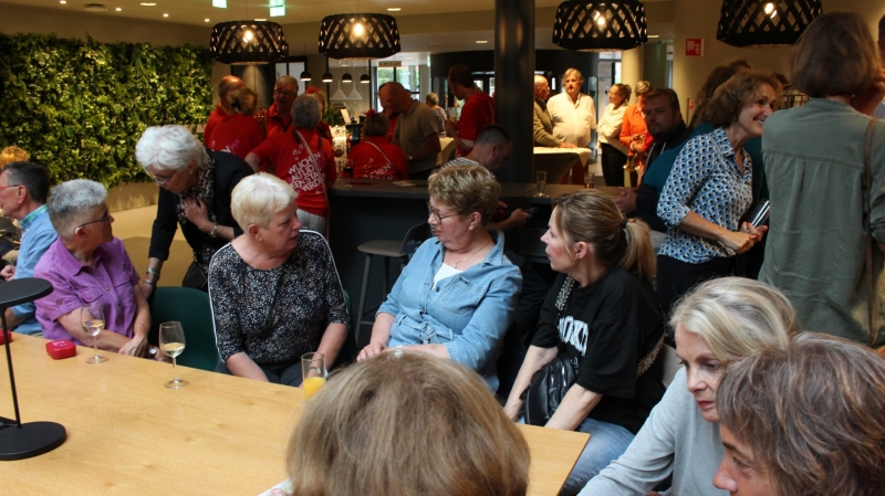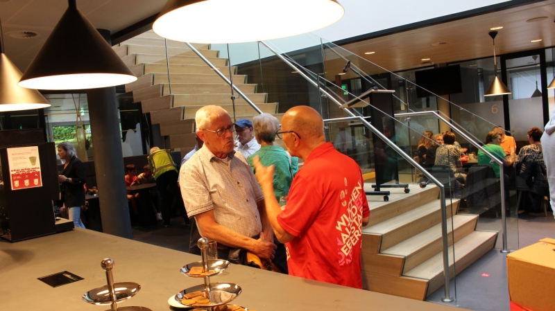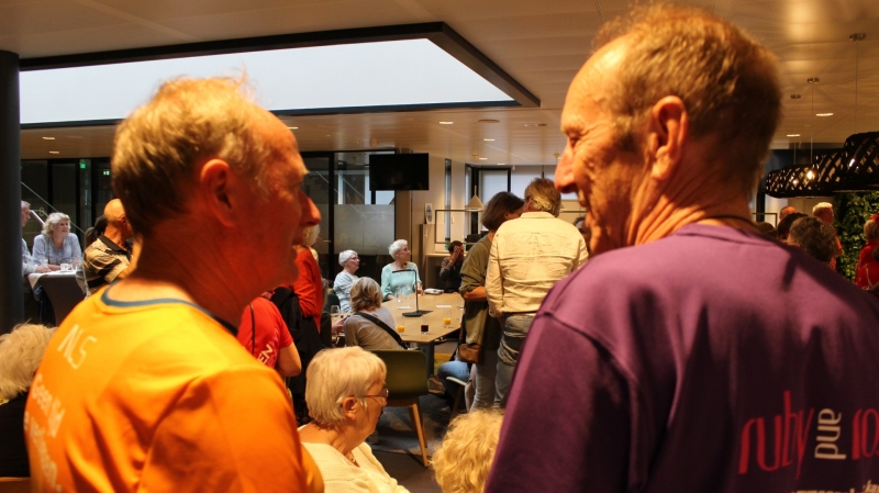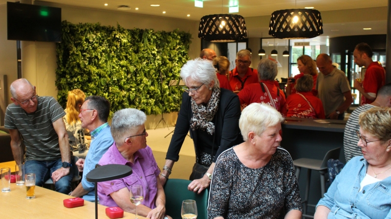Onder het genot van een kopje koffie/thee, frisdrank, een wijntje of een biertje werden sportieve wandelervaringen uitgewisseld. Ook recordhouder Willy Heij was aanwezig - hij gaat voor zijn 64e medaille!