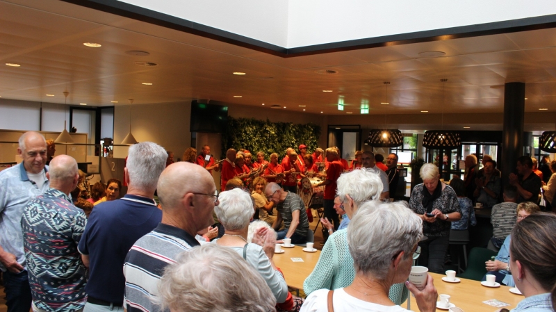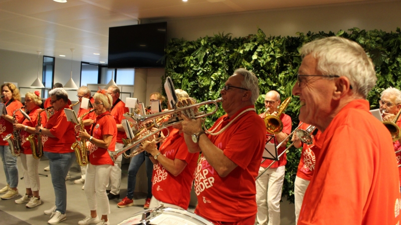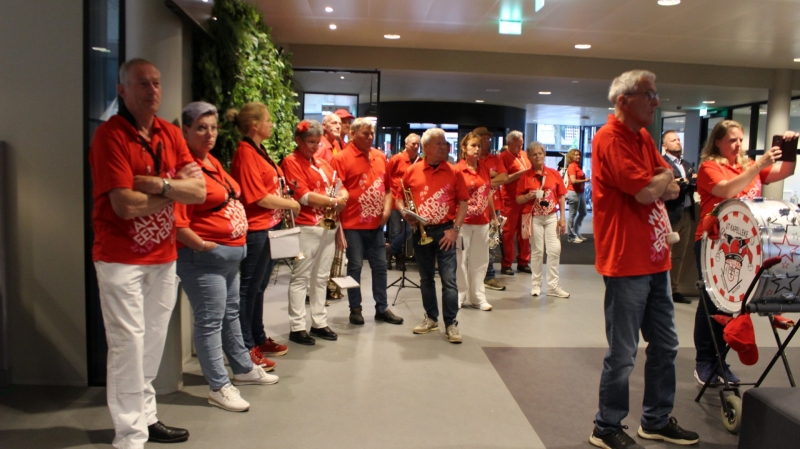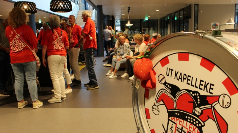 Dweilorkest Ut Kapelleke zorgde voor de vrolijke noot. Kijkt u maar eens naar deze gezellige happening. Er doen 676 Wijchense lopers mee aan deze editie.