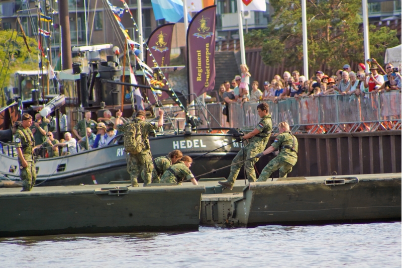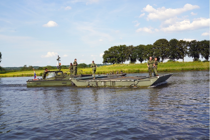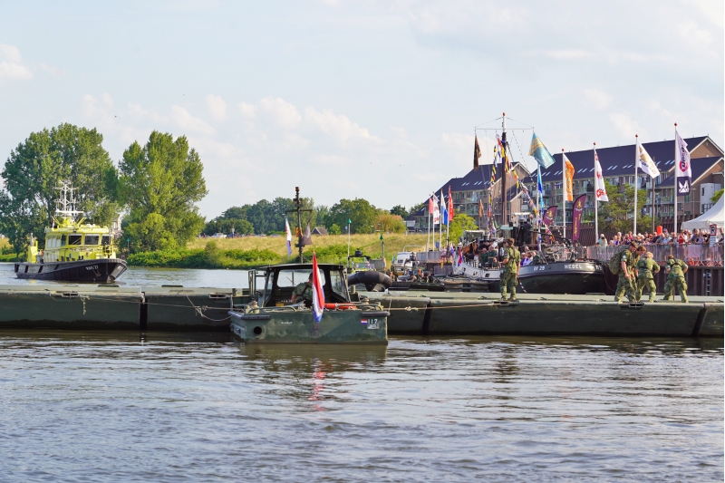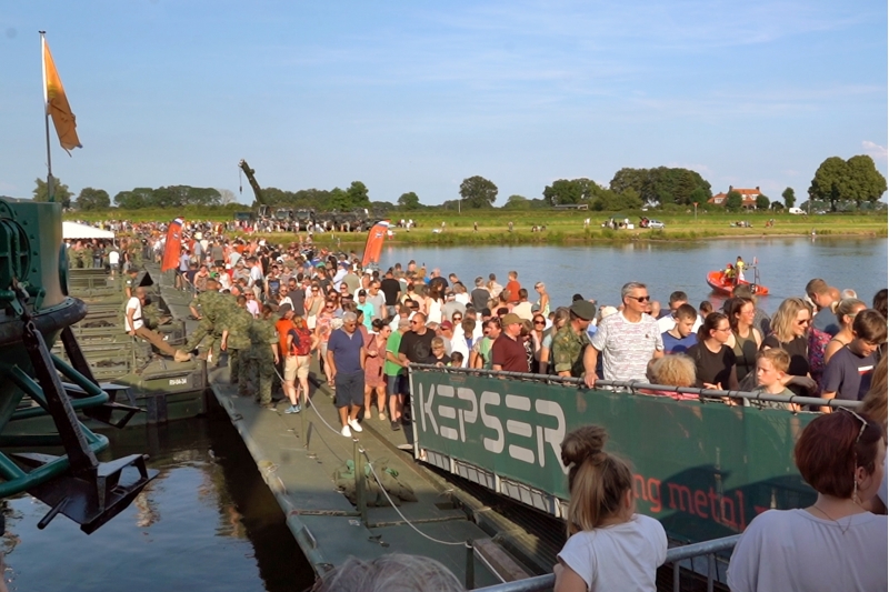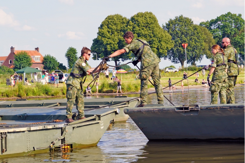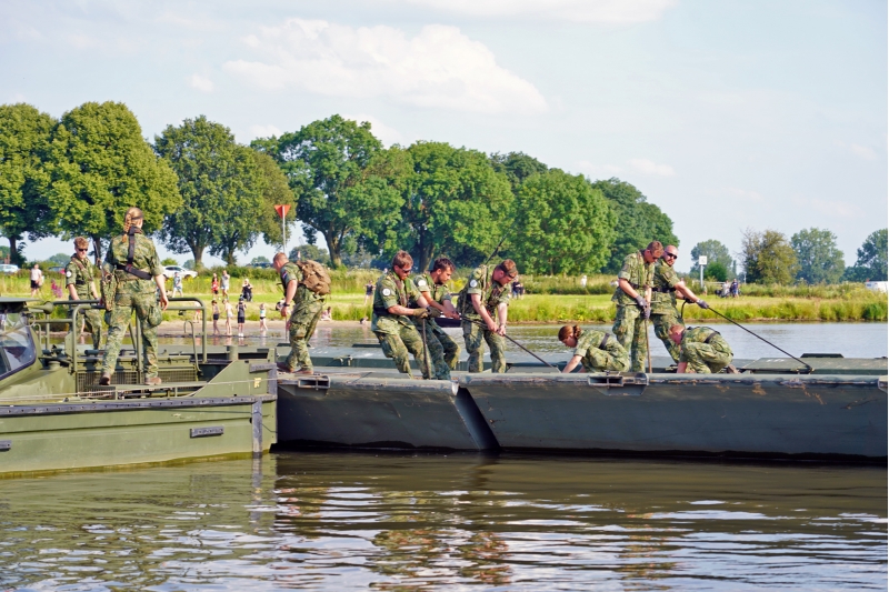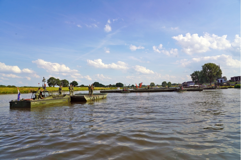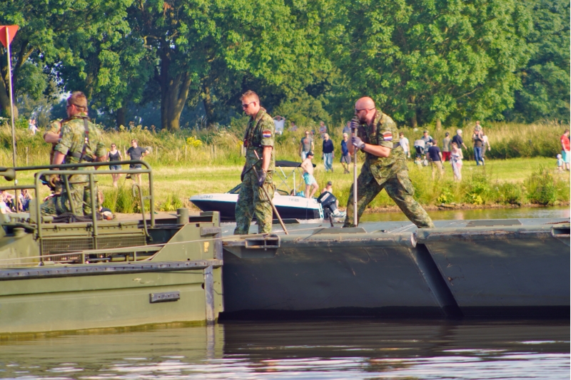 Rond zes uur werd het eerste deel van de brug aan de zijde van Mook gelegd. Militairen van 105 Geniecompagnie waterbouw legden de brug, tijdens de laatste Vierdaagsedag dé verbinding tussen Limburg en Brabant, binnen 20 minuten vast. Aan beide kanten van de Maas stonden tientallen belangstellenden om de proeflegging van de brug te zien. Eerder vandaag werd bekend dat de routes aangepast zijn voor morgen, wat betekend dat een deel van de lopers voor het eerst niet over de brug zullen lopen.