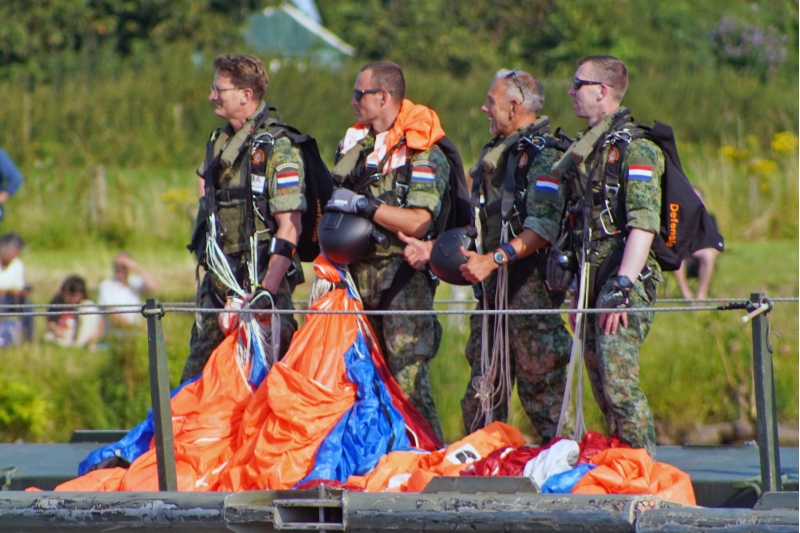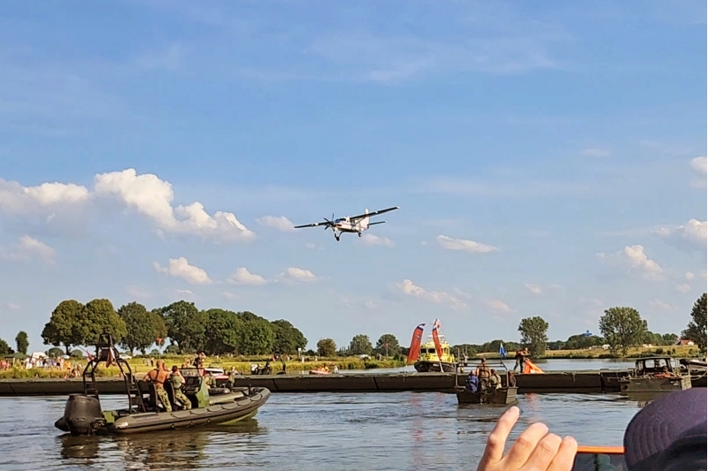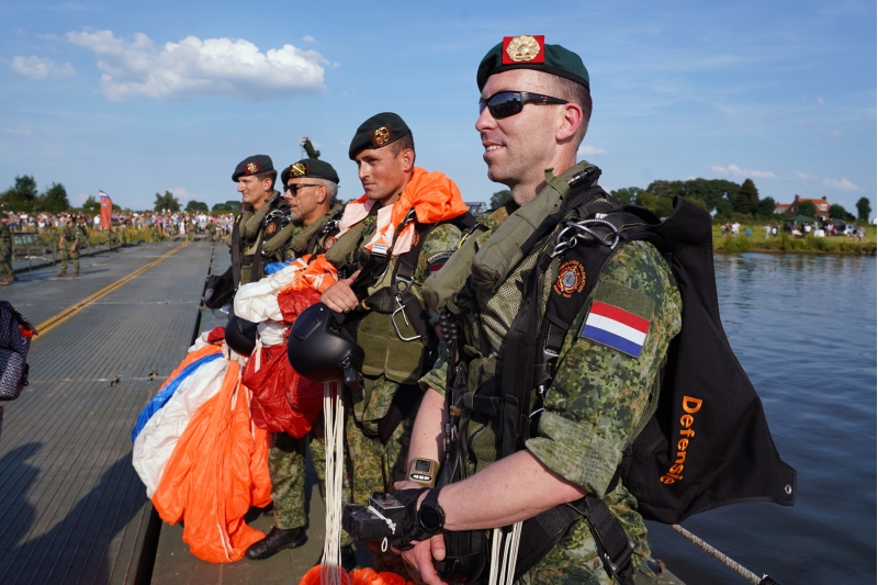 Vanavond vonden de proeflegging en de openingsceremonie van de pontonbrug in Cuijk plaats. De brug werd spectaculair geopend met parachutisten.
