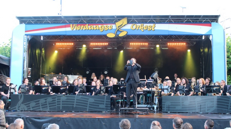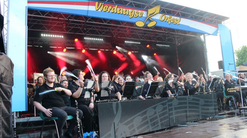 Door het slechte weer werd op dinsdag 16 juli het optreden van Hét Vierdaagse Orkest een beetje uitgesteld. Maar dat mocht de Wijchense pret niet drukken. Het orkest gaf een fantastisch concert en daar genoot iedereen van! Kijk maar eens wie er allemaal waren!