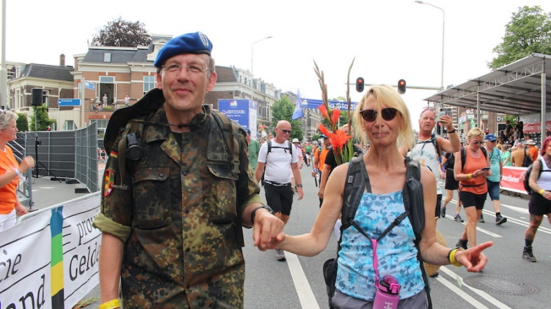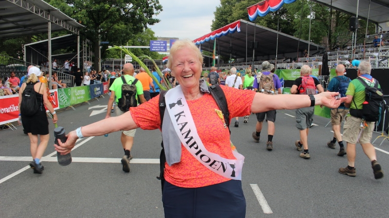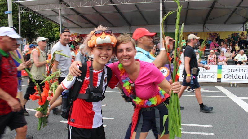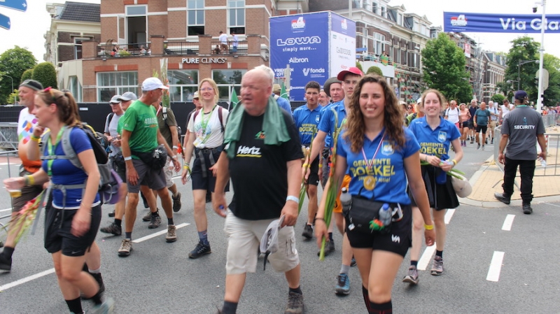 “Iedereen, maar dan ook iedereen die hier vandaag loopt is een echte Held. Ja en met een hoofdletter!”, laat de huidige meelopende 4Daagse-recordhouder weten. Zijn 64e keer was niet zo moeilijk, liet Willy lachend weten. Het was inderdaad op vrijdag 19 juli een ware triomftocht op de Via Gladiola ofwel Sint Annastraat! Helaas jammer dat de organisatie zelf lang op zich liet wachten om de wandelaars persoonlijk de hand te schudden of mee op de foto te gaan. Het zou ze sieren om vanaf volgend jaar altijd om 10.00u al aanwezig te zijn om niks te hoeven missen! Hoe dan ook: het was een fantastische binnentocht en een prima 4Daagse-editie 2024!