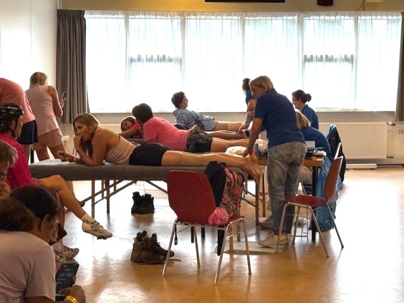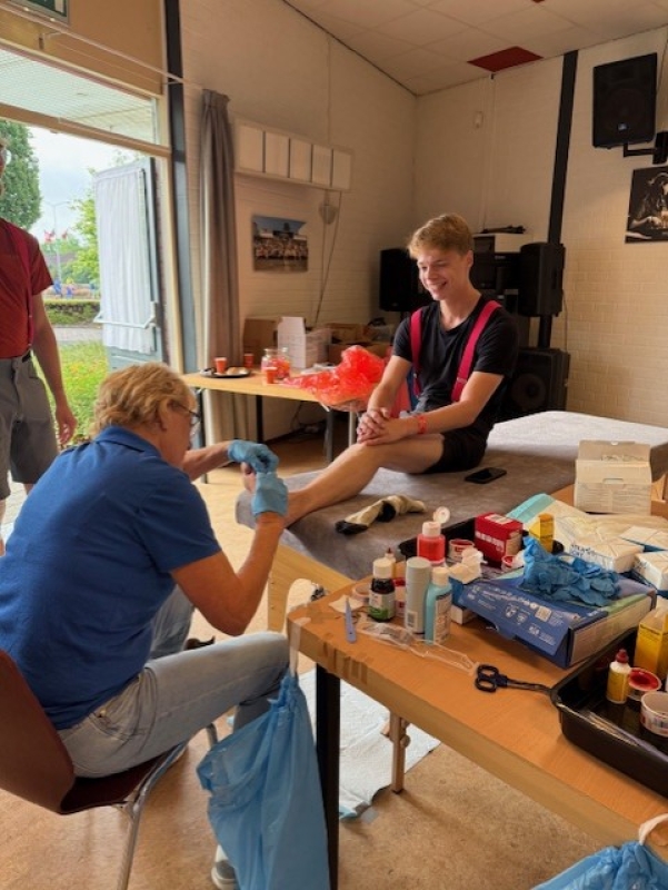 Bij het wijkcentrum zorgden Buurtzorg Wijchen voor de zere voetjes en Gary Abrahams gaf een heerlijke massage. Dit was allemaal gratis voor de wandelaars. HELEMAAL TOP!