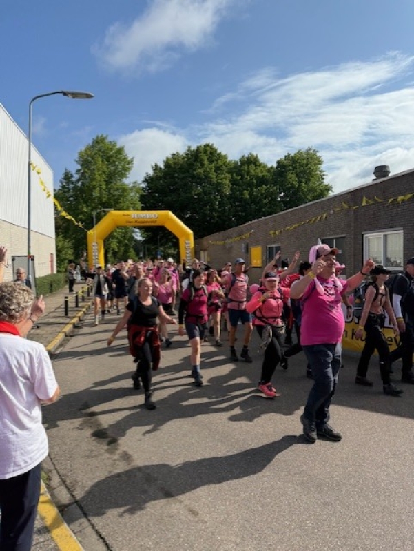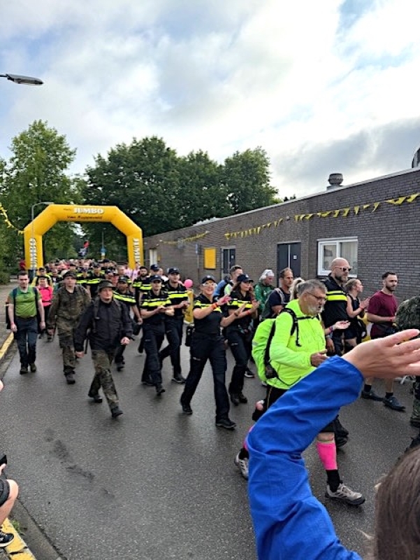 Dit jaar was het voor het eerst dat de Vierdaagsewandelaars vanaf het politiebureau richting Wijkcentrum Wijchen Zuid en Jumbo Zuiderpoort liepen