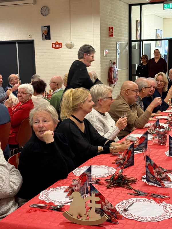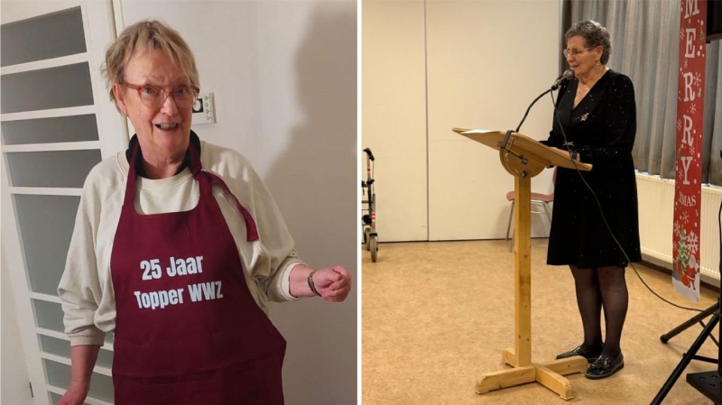 Begonnen in 2000 en nu al 25 jaar vrijwilligster in Wijkcentrum Wijchen Zuid. Ze zorgt al jaren voor het gezellige kookcafé, in de bediening is ze ook een ster en waar nodig helpt ze altijd mee met diverse activiteiten. Maar koken is haar passie en daarom was de Kerstbrunch dan ook een mooie gelegenheid om haar in het zonnetje te zetten met verschillende leuke cadeautjes, en een leuk keukenschort kon niet ontbreken als grappig cadeau. Ze was super verrast en hier en daar werd er dan ook een traantje weggepinkt tijdens een prachtig lied speciaal voor haar gemaakt. Marjan is en blijft een van onze geweldige vrijwilligers.