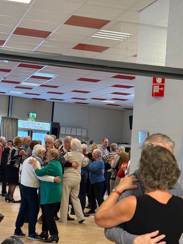 Er wordt gedanst op onder andere country- en jazzmuziek, ze doen samen de line-dance en tussendoor wordt zelfs meegezongen met gezellige Nederlandstalige muziek. Meer gezelligheid kun je je bijna niet wensen.