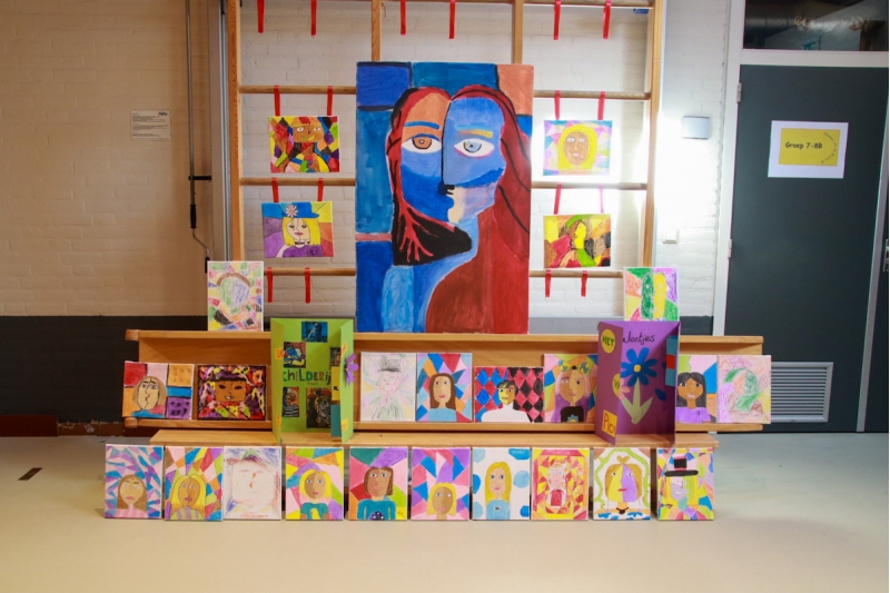 Groot en klein, iedereen was de afgelopen weken een kunstenaar op de Paulusschool. Met het project 'Kunstweken' leerden de kinderen over verschillende kunstenaars en veranderden de klassen in musea. Mondriaan, Van Gogh, Miró en vele andere kunstenaars kwamen aan bod.