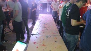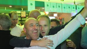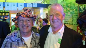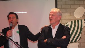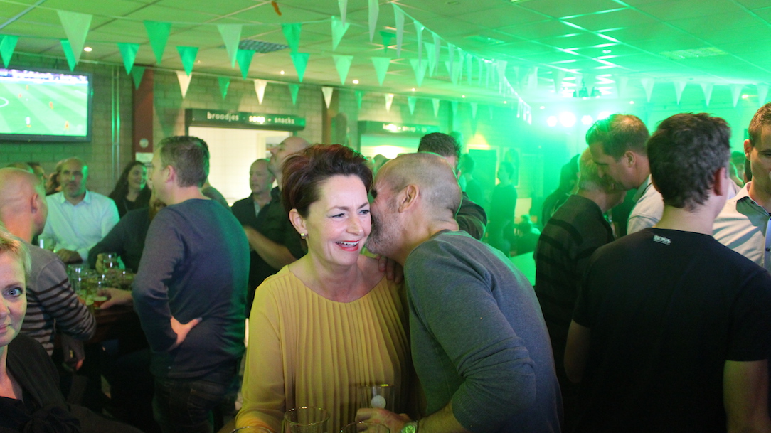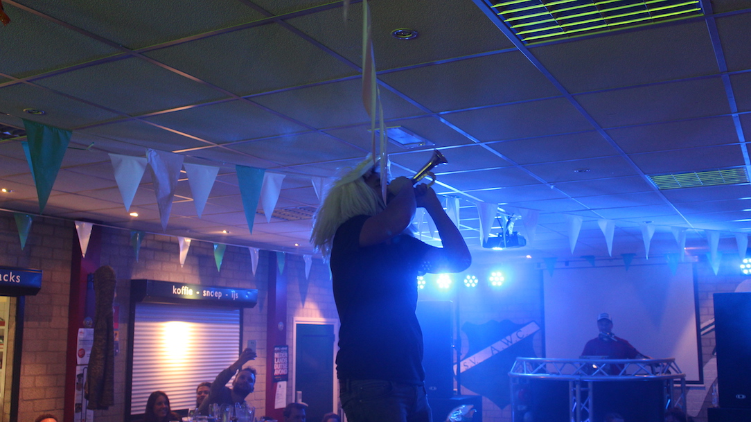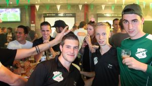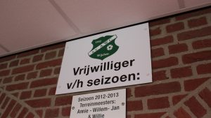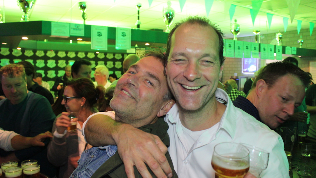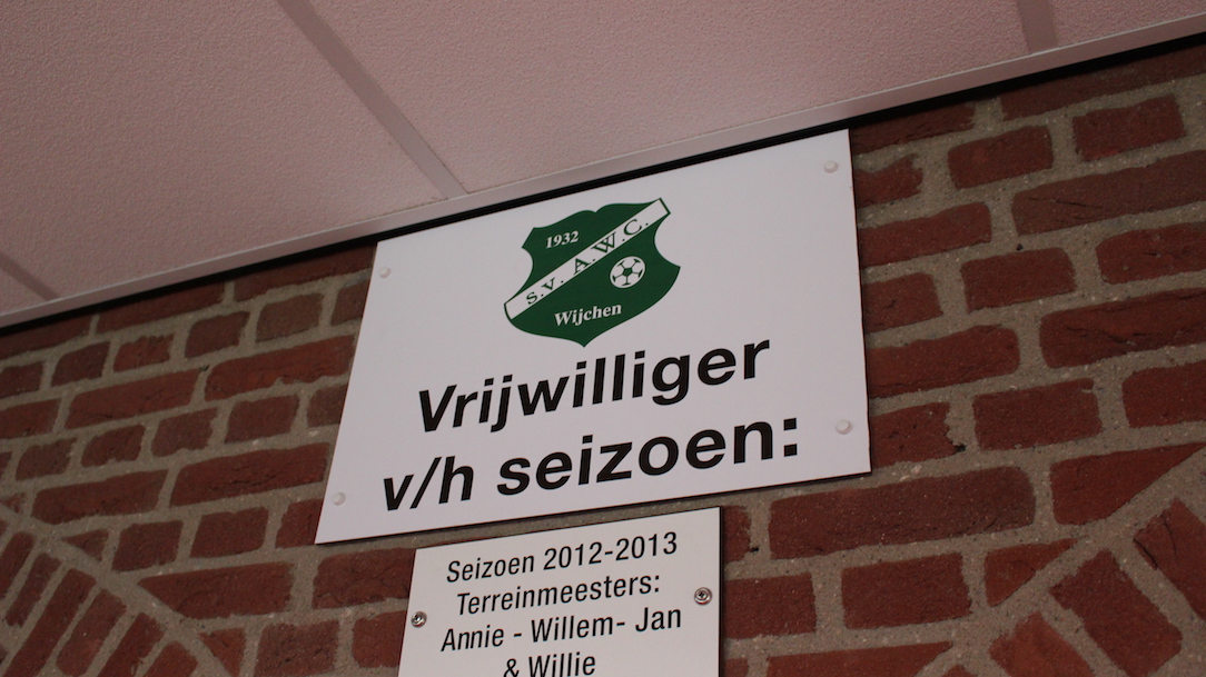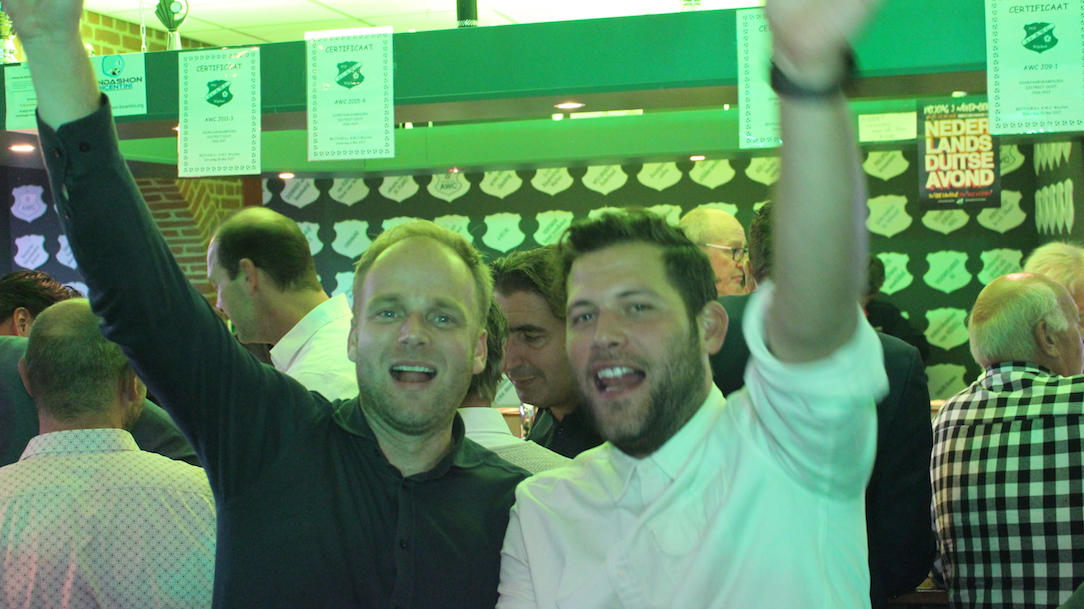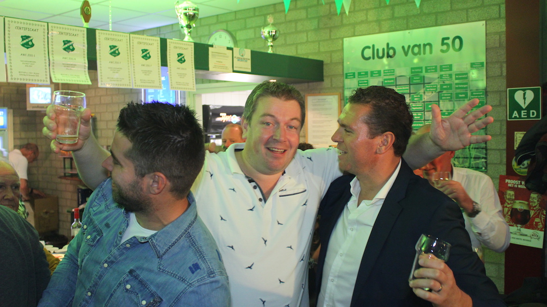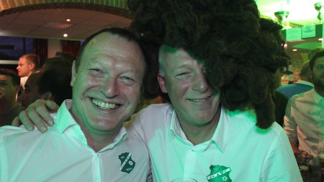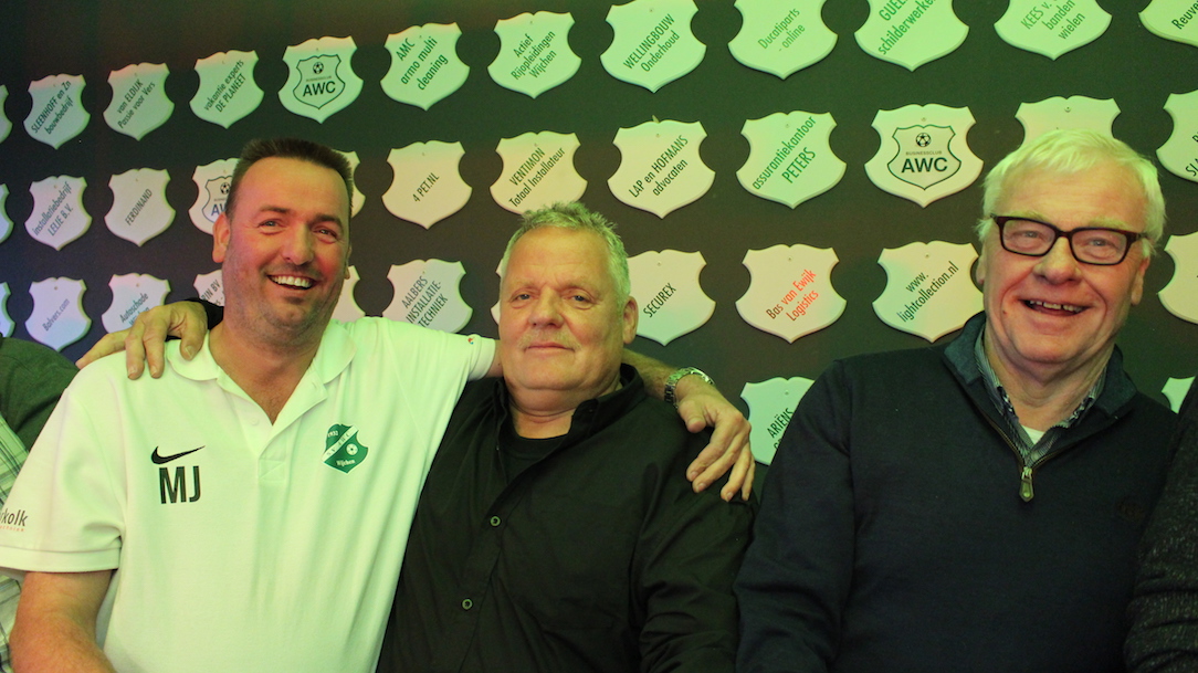 Op zondag 29 oktober, na de door AWC verloren wedstrijd tegen SC ‘t Zand, is Frans Derks tijdens een ouderwets gezellige DJ Ronnie-middag bedankt door heel veel AWC-leden. Frans gaat er na 55 jaar mee stoppen, maar “mijn hart zal altijd “Groen Wit” blijven!” liet de kersverse Zilveren Draagspeld-drager licht geëmotioneerd weten. Zijn slogan was altijd MIK, dat staat voor Mentaliteit, Inzet en Karakter. “De MIK-mentaliteit is binnen AWC is weer terug - het familiegevoel is er weer! Daar moeten we trots op zijn”, wist de jubilaris. Tevens liet Frans weten dat hij deze 55 jaren zonder zijn vrouw Herma nooit had volgehouden. Proficiat Frans en Herma voor wat jullie voor AWC gedaan hebben!