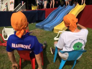 En er was weer van alles te beleven op woensdag 23 augustus. Zo gingen de kinderen naar Het Hof van Kaatje, bezochten ze het parcours van de Strong Viking Run en werd fanatiek de waterskisport beoefend! Waar kan je zoiets nou nog doen! De hutten zijn mooi geworden en ook werd weer veel plezier verzameld, ook met het maken van de cupcakes. De Pleziermeter is dan ook, met nog een dag te gaan, gestegen naar 2/3 vol. Dat gaat de goede kant op! Zou die morgen met de Bonte Avond vanaf 17.30u aan de Geitweg op Alverna helemaal de top gaan halen? We zullen het gaan zien...