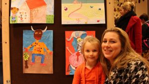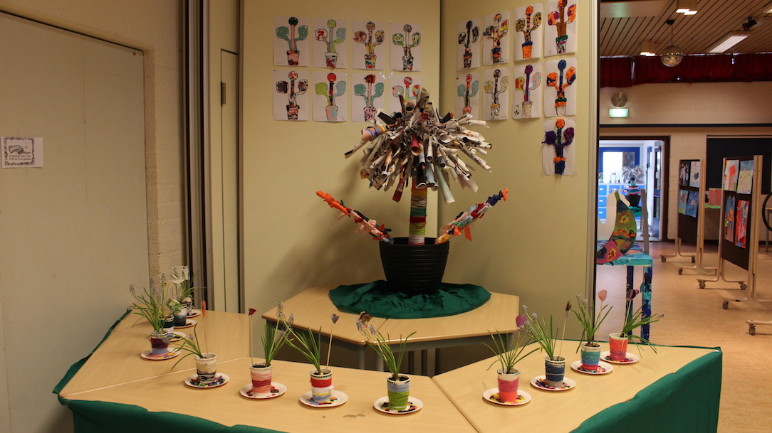 Basisschool De Speelhoeve heeft het kunstproject 'Beeldig Wijchen' gedaan, mede dankzij subsidie van de gemeente Wijchen. Bij dit kunstproject zijn 7 kunstenaars betrokken en bijna 400 kinderen! Samen met een kunstenaar heeft elke klas een paar kunstwerken bezocht en erover gefilosofeerd. Aan de hand van een van de kunstwerken en zijn eigen expertise van materiaal, heeft de kunstenaar vervolgens een project ontworpen en dit uitgevoerd in de klas. Ter afsluiting van dit project is er nu een expositie t/m 9 april in de school. De expositie werd op donderdag 4 april onder grote belangstelling feestelijk geopend door de bekende kunstenaars Huub en Adelheid Kortekaas uit Winssen. En natuurlijk waren ook de kunstenaars die aan de projecten deelnamen aanwezig: Marie-Louise Hooymans, Ine van Gaalen, Marion Arts, Petra Verdonk, Daniëlla Krijt, Jessica Becks en Stijn Koetsier. Vrijdag 5 en maandag 8 april kunt ook u naar de prachtige kunstwerkjes komen kijken bij de Speelhoeve op de Blauwe Hof 4001, tussen 14.00 en 15.00 uur - en dat is zeker een aanrader! Kijkt u maar eens naar de foto's. Wat een creatieve kids hebben we toch in Wijchen!